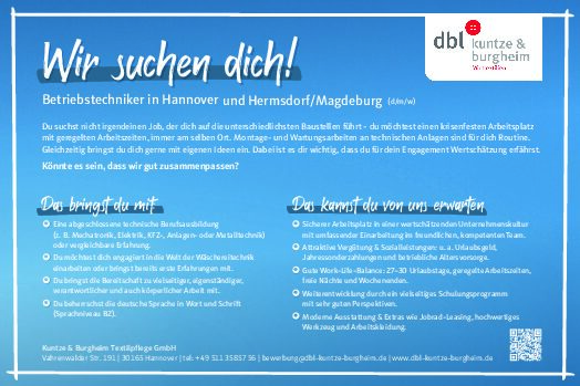 Stellenanzeigen / -gesuche Suchen Betriebstechniker in Hannover und Hermsdorf/Magdeburg (d/m/w) Wir suchen dich! Du suchst nicht irgendeinen Job, der dich auf die unterschiedlichsten Baustellen fà › mehr